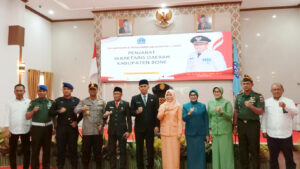 SULTRAKITA.COM, WATAMPONE — Kepala Badan Kepegawaian dan Pengembangan Sumber Daya Manusia (BKPSDM) Kabupaten Bone Andi Muhammad Guntur resmi dilantik sebagai Penjabat (Pj) Sekertaris Daerah (Sekda) Kabupaten Bone menggantikan Andi Islamuddin yang diangkat menjadi Pj Bupati Bone.
