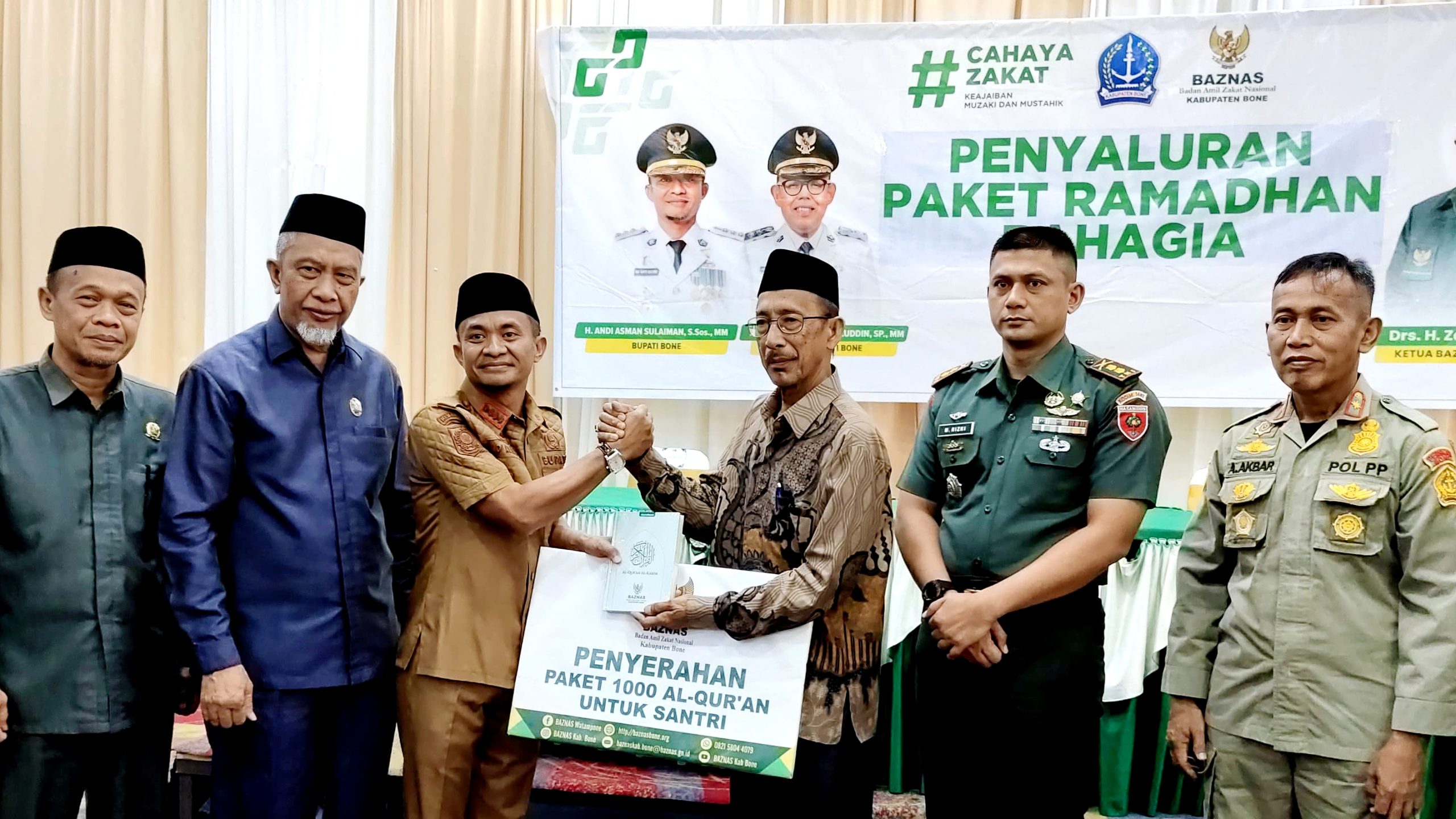 Selain pembagian paket ramadhan bahagia, Baznas Bone juga menyerahlan 1000 bantuan Alqur’an secara simbolis kepada Pondok pesantren yang ada di Kabupaten Bone.