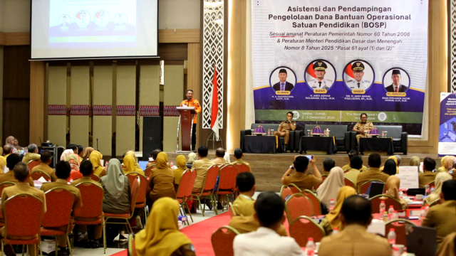 Dengan nada tegas, Ia mengingatkan para kepala sekolah, bendahara, dan operator untuk bersikap profesional dan menghindari segala bentuk penyimpangan.