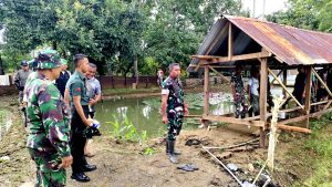 Aktifitas Dandim 1407 Bone, Letkol Inf La Ode Muhammad Idrus bersama sejumlah personel TNI di lokasi pembuatan spot mancing (foto: Wardah/sultrakita.com)