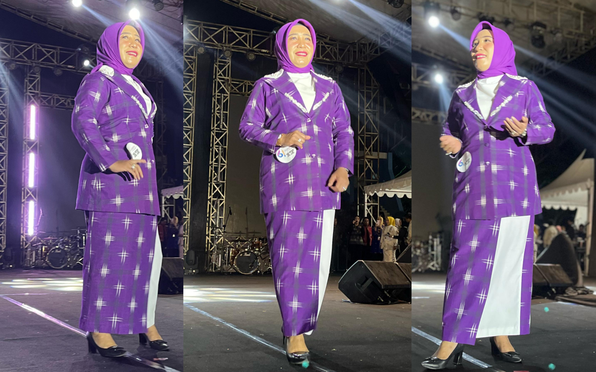 Dialah Ketua Dekranasda Wakatobi Eliati Haliana, yang membawa pesona budaya Wakatobi dalam Fashion Show Busana Tenun Daerah menampilkan Ketua Dekranasda Kabupaten Kota se-Sulawesi Tenggara (Sulsel).