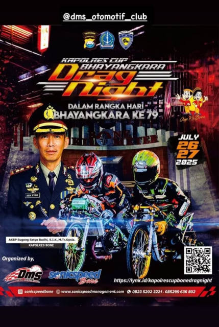 Untuk pertama kalinya, ajang drag bike dan drag race digelar pada malam hari di Sulawesi Selatan. Tidak tanggung-tanggung, event ini memperebutkan total hadiah fantastis senilai Rp 235 juta, yang akan dibagikan kepada para juara di berbagai kategori.