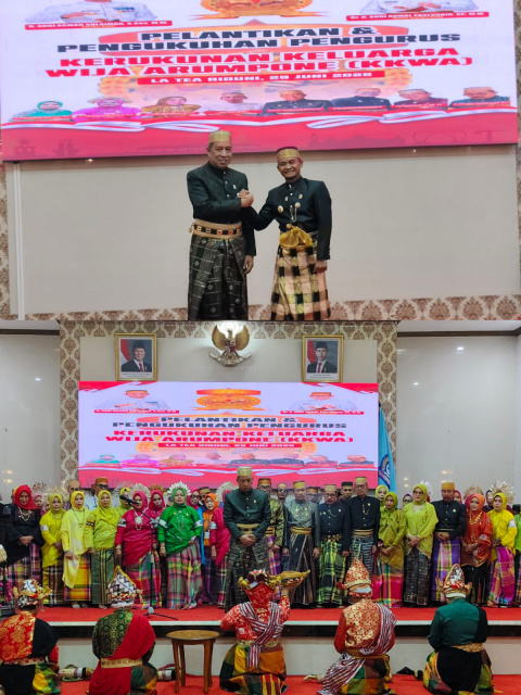 SULSEL_SULTRAKITA.COM, WATAMPONE — Dewan Pengurus Pusat (DPP) Kerukunan Keluarga Wija Arumpone (KKWA).resmi dikukuhkan oleh Bupati Bone, Andi Asman Sulaiman, dalam acara khidmat yang digelar di Aula La Teya Riduni, Kompleks Rumah Jabatan Bupati Bone, Jalan Petta Ponggawae, Minggu (29/6).