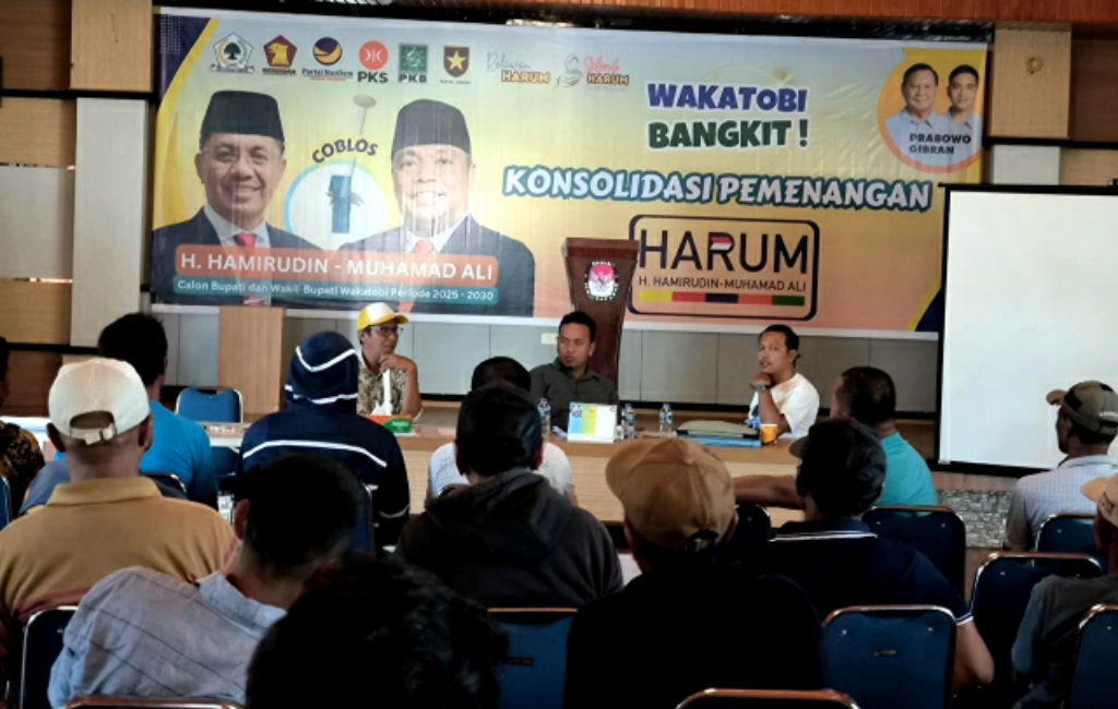 Rapat Konsolidasi dihadiri Ratusan Tim dan Relawan Pasangan Calon (Paslon) Bupati dan Wakil Bupati Wakatobi Nomor Urut 1 H Hamirudin–Muhamad Ali (HARUM). Kolaborasi PKB, Tim Pemenangan dan Relawan ini, diyakini bakal memenangkan Paslon Harum di Patuno Raya.