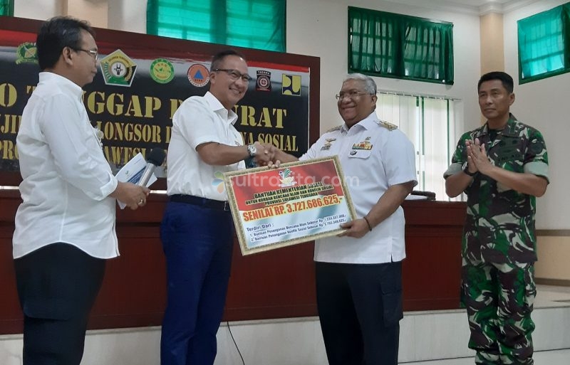 SULTRAKITA.COM, KENDARI – Menteri Sosial (Mensos) Agus Gumiwang Kartasasmita meninjau salah satu lokasi banjir di kota Kendari. Dalam kunjungannya di Sulawesi Tenggara (Sultra), Mensos menyerahkan bantuan secara simbolis senilai Rp 3.727. 686.625 terdiri dari bantuan penanganan bencana alam sebesar Rp 1. 534. 337. 000 dan bantuan penanganan konflik sosial Rp2. 193. 349. 625 secara simbolis yang diterima langsung Gubernur Sultra Ali Mazi di aula Korem 143 Halu Oleo Rabu (12/6).