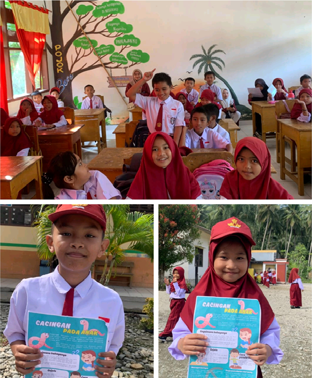 Dalam sesi tersebut, siswa diperkenalkan dengan gejala umum cacingan seperti perut buncit namun tubuh kurus, gatal di sekitar anus terutama malam hari, lemas, kurang nafsu makan, dan berat badan yang sulit naik. Mereka juga diajak memahami kebiasaan buruk yang bisa memicu cacingan, seperti tidak mencuci tangan sebelum makan, jajan sembarangan, dan jarang memakai alas kaki saat bermain di tanah.