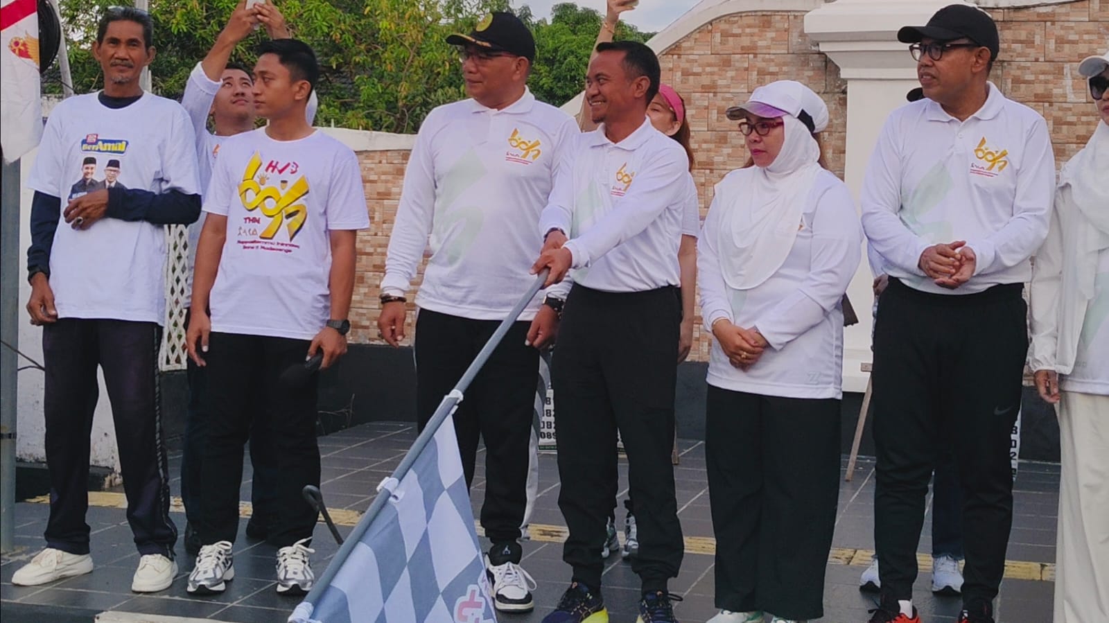 Pelepasan Peserta Jalan Santai memperingati Hari Jadi Bone (HJB) Ke 695, oleh Bupati Bone Andi Asman Sulaiman bersama Wakil Bupati Bone Andi Akmal Pasluddin. (Foto: Wardah)