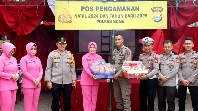 Guna mewujudkan dukungan moral dan solidaritas kepada Petugas yang berjaga, Kapolres Bone AKBP Erwin Syah bersama Ketua Bhayangkari Siska Erwin Syah menggelar Patroli sekaligus berbagi bingkisan kepada Petugas Posko Operasi Lilin 2024.