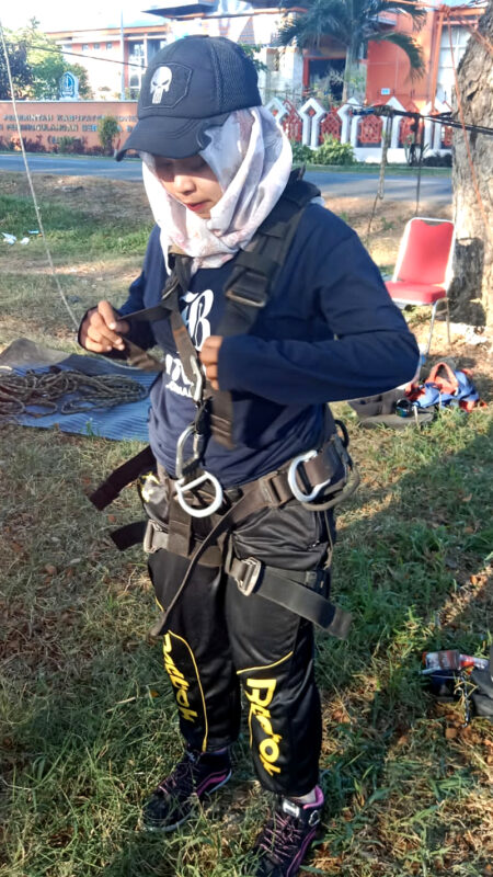 Peserta juga diberikan kesempatan mencoba langsung arena pelatihan yang telah disediakan oleh Tim BPBD kabupaten Bone, dengan latihan Repling dan Prusiking.