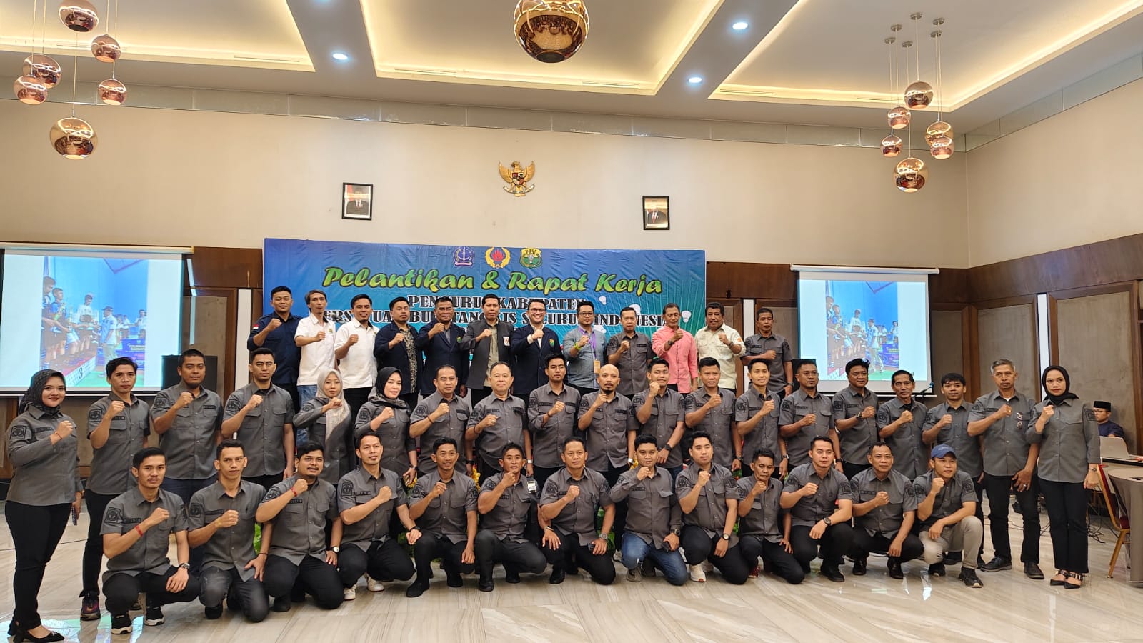 Dengan menggunakan setelan kameja berwarna abu-abu 43 anggota pengurus PBSI Bone dikukuhkan langsung okeh Ketua Umum PBSI Provinsi Sulawesi Selatan, Devo Khaddafi.