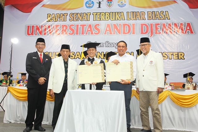 Penandatanganan MoU ini dilangsungkan di Gedung Saodenrae Convention Center [SCC] Palopo, bertepatan dengan acara wisuda Universitas Andi Djemma, Senin (26/05/2025).