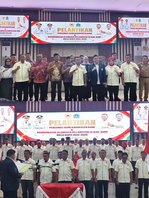 Momen bersejarah ini juga dirangkai dengan pelantikan Koordinator Olahraga Kecamatan se-Kabupaten Bone masa bakti 2025-2029, menandai dimulainya kerja keras untuk memajukan prestasi olahraga di Bumi Arung Palakka.