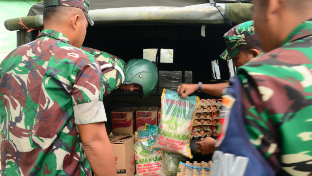 Paket sembako yang diberikan berisi beras, telur, dan Indomie, sebagai bentuk kepedulian TNI terhadap masyarakat yang membutuhkan.