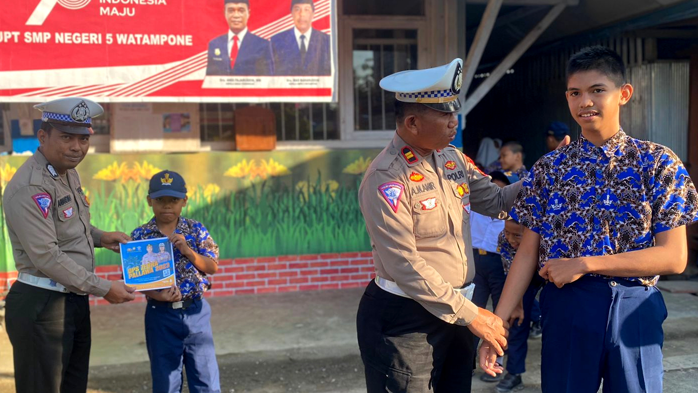 SULTRAKITA.COM, WATAMPONE — Sebagai bentuk sosialisasi dalam rangka Operasi Zebra Pallawa 2023, Satlantas Polres Bone kembali mengajak pelajar untuk taat dan patuh pada peraturan berlalu lintas.