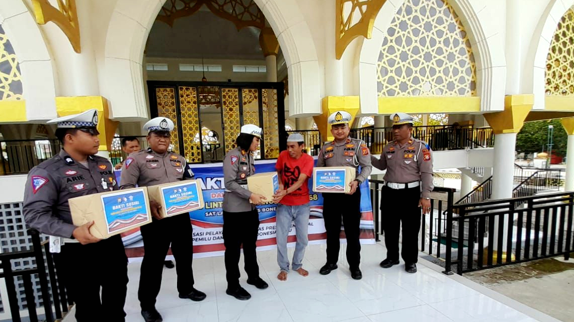 “Ini sebagai bentuk kepedulian Satlantas Polres Bone terhadap rumah Ibadah dalam rangka menyambut Hari Lalu Lintas Bhayangkara ke-68,” jelasnya.